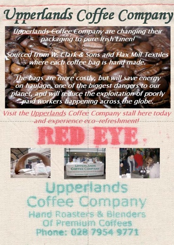 Some of the linen was made by Flax Mill Textiles, Derrylane, Dungiven, where all the material is being finished and sewn into bags. This move by the Upperlands Coffee Company, which has obviously increased the price of their package substantially from the previously-used cotton bags, is setting a shining example of