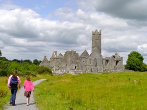 The abbey is roughly 9 miles from Ennis. A visitor centre is located near the abbey and the structure and grounds can be visited free of charge. A caretaker is permanently based at the abbey. Floodlighting has recently been installed which produces a spectacular sight at night. The graveyard surrounding the abbey is still in use.