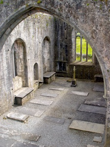 A far earlier monastery had existed on the site, which burned down in 1278. A Norman castle was built soon after by Thomas de Clare, a military commander. The foundations of the castle's enormous corner towers can still be seen. Around 1350 the castle, by then a ruin, was rebuilt as a church by the McNamara clan. It was this structure which the MacNamaras subsequently rebuilt as the present abbey. In 1541, during the Reformation, King Henry VIII confiscated the abbey and it passed into the hands of Conor O'Brian, Earl of Thomond. In about 1590 the MacNamaras regained control of the abbey and once again set about repairing and restoring it. In about 1640 the building became a college and is alleged to have had 800 students. Sadly Oliver Cromwell arrived only 10 years later, murdering the monks and destroying the abbey. In 1671 the abbey was once again restored, but never regained its former status. Eventually in 1760 the monks were expelled, although the last Friar, John Hogan, remained there until his death in 1820, by which time the buildings were ruined by neglect.